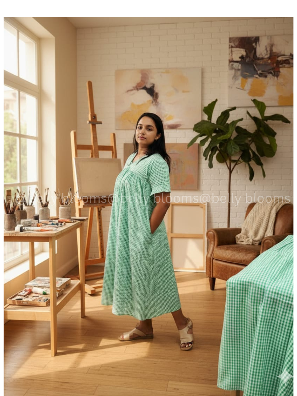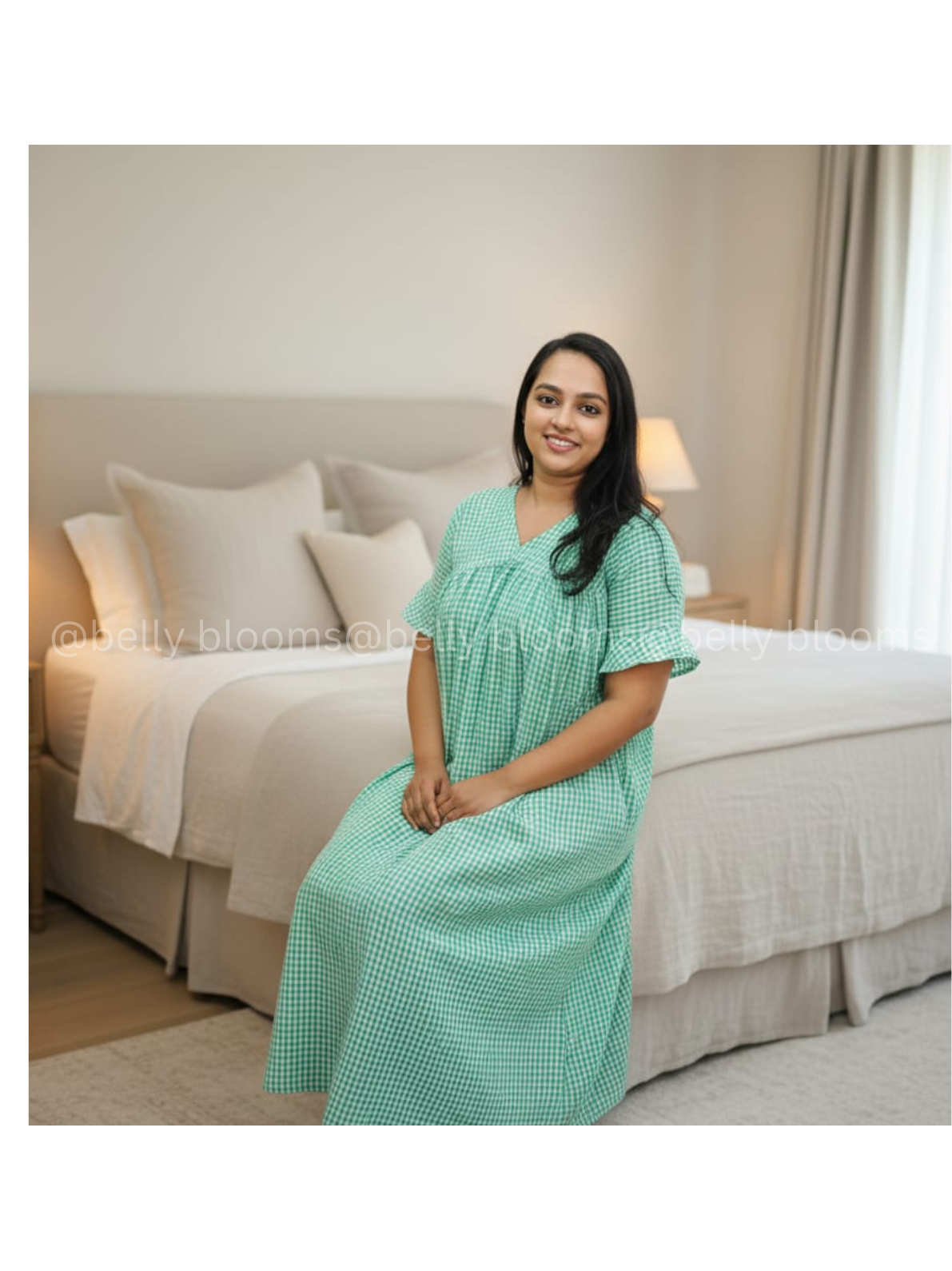 Where comfort meets charm in every check. Fresh, breezy, and feeding-friendly… that’s the Greentouch magic!Elegant green check pattern for a fresh, classic look.No shoulder cutting for a smooth, comfortable fit.48-inch length for perfect coverage.Stylish bell sleeves for a graceful silhouette.Full frills on the chest portion for added charm.Back A-line design for extra comfort and flow